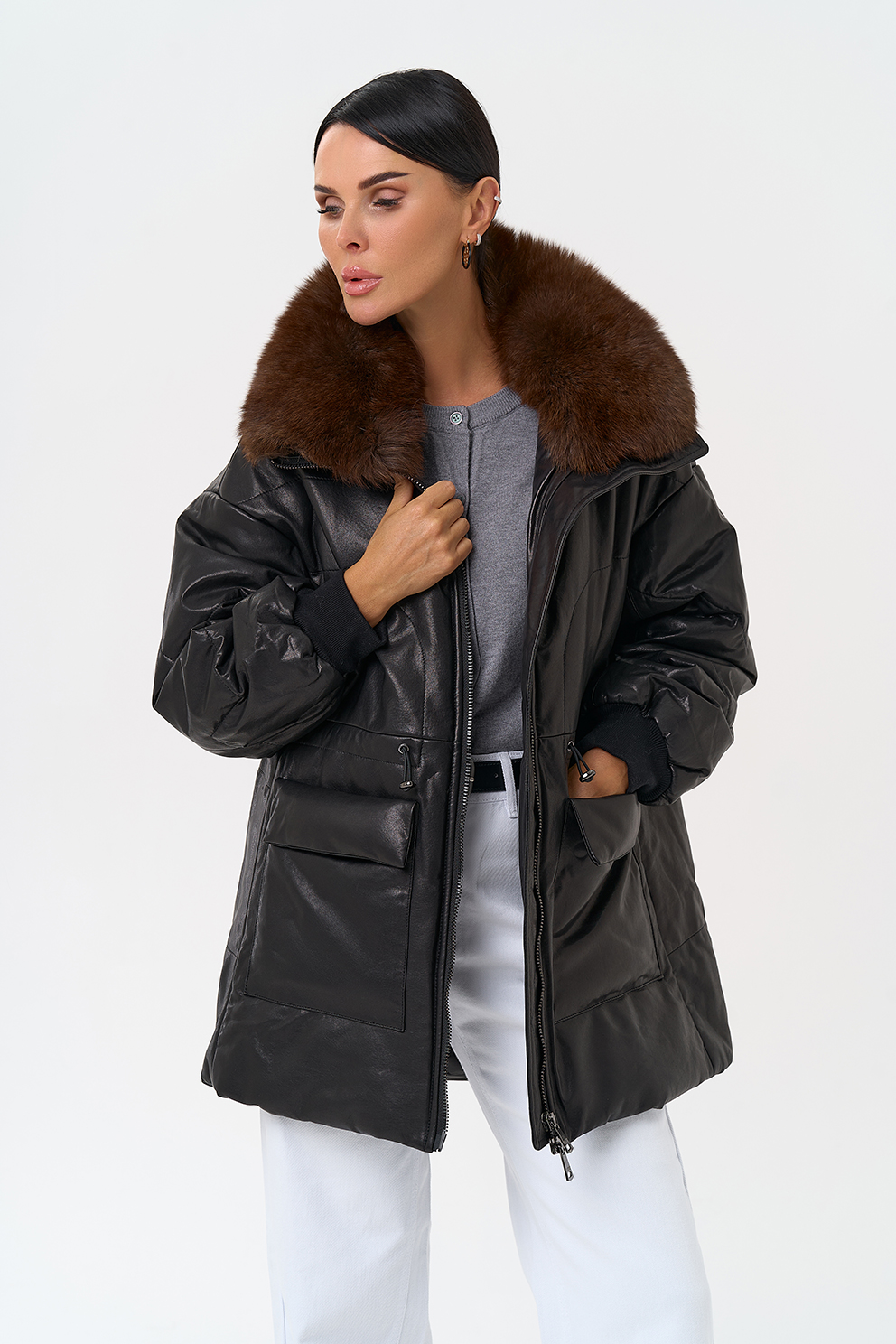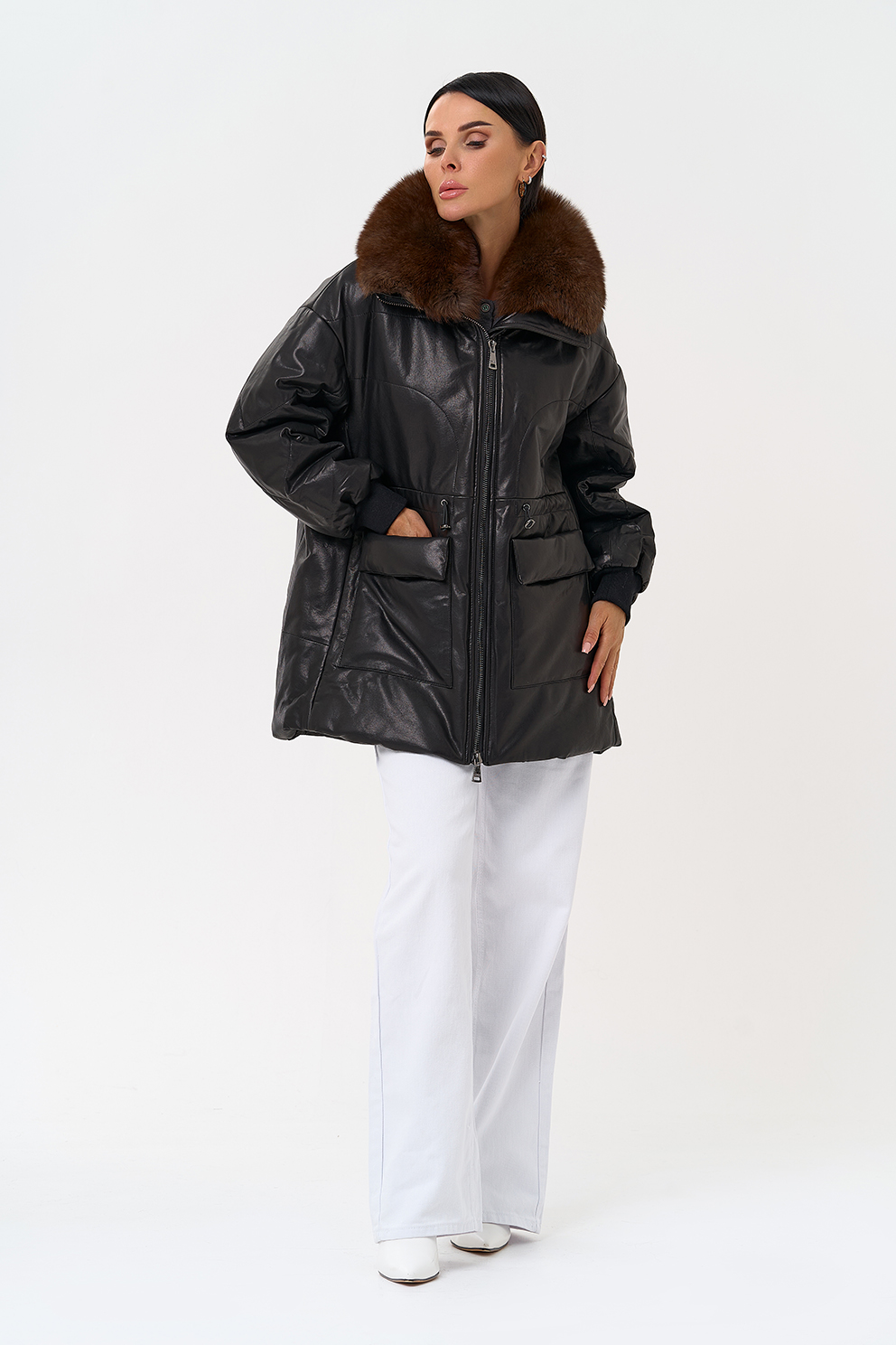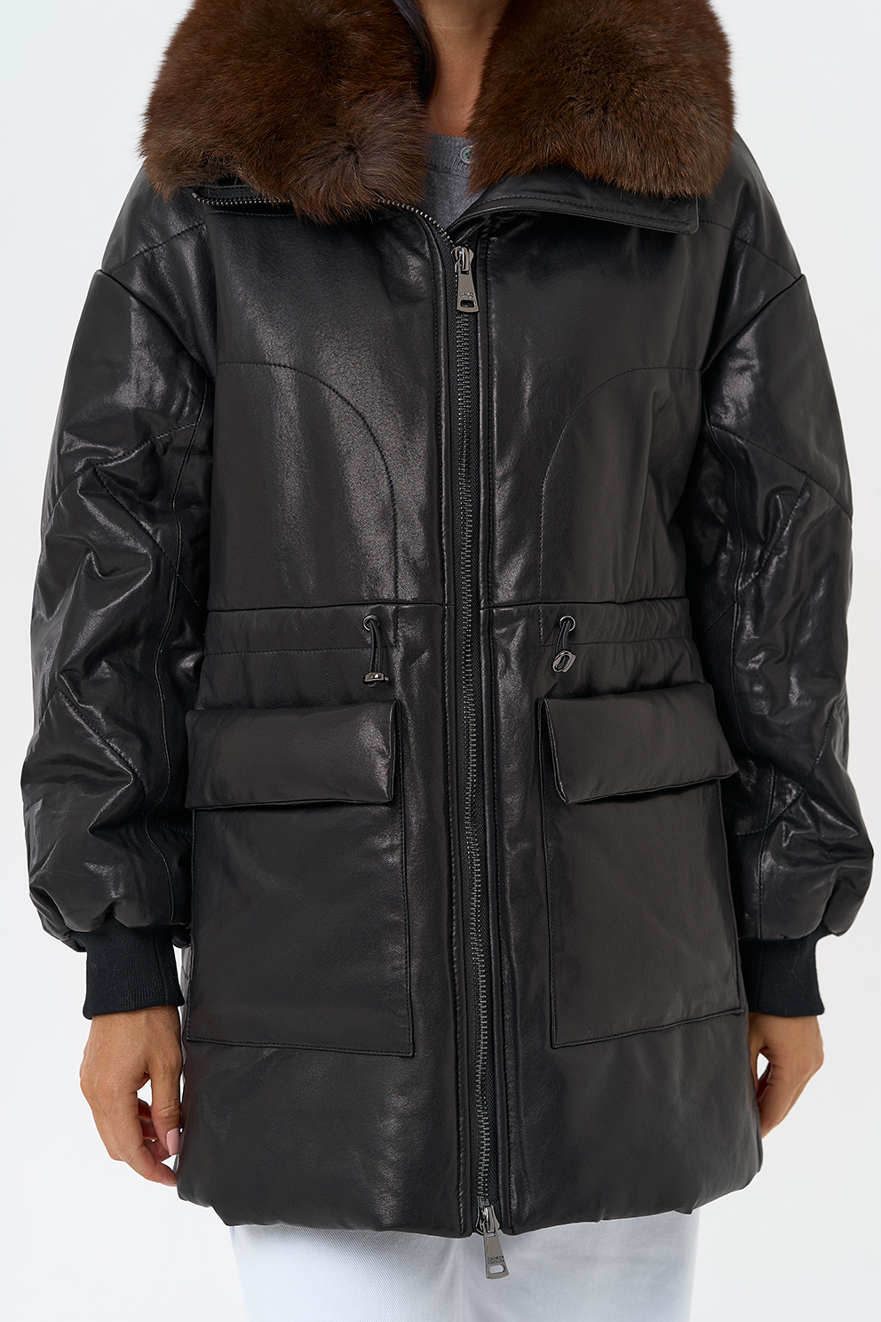 Утепленная кожаная куртка с песцом