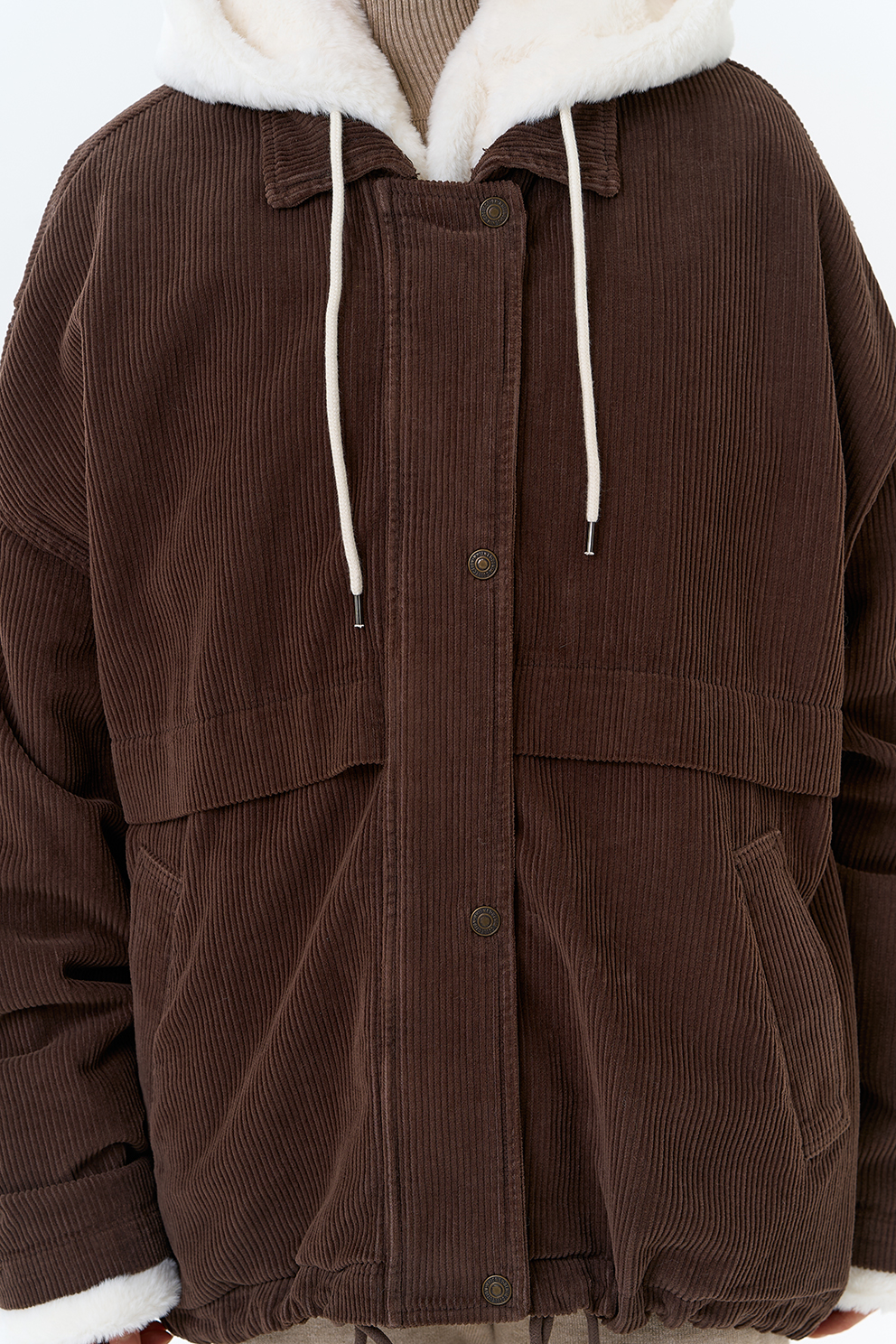 Крой воротника - съемный капюшон, отделка эко мех