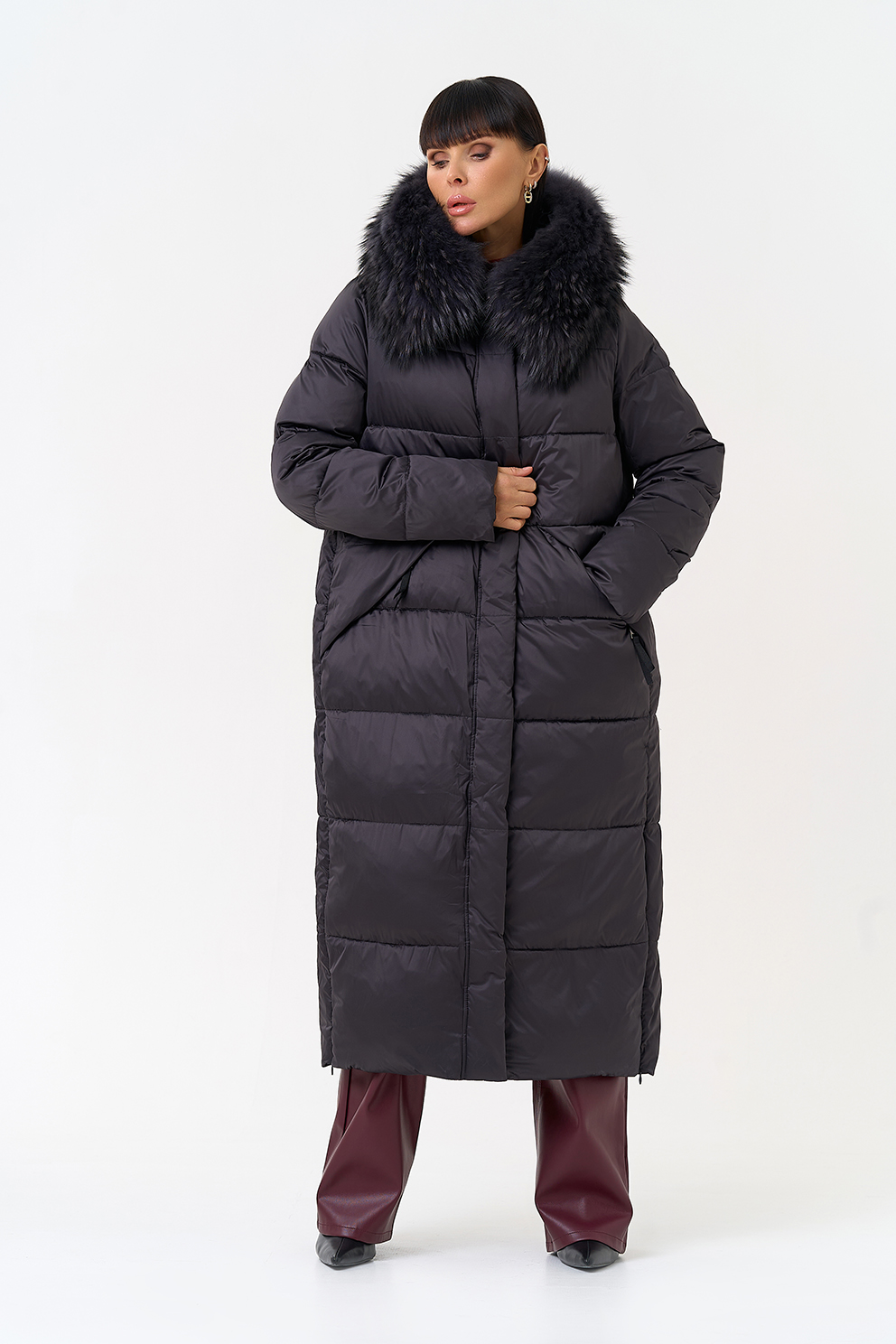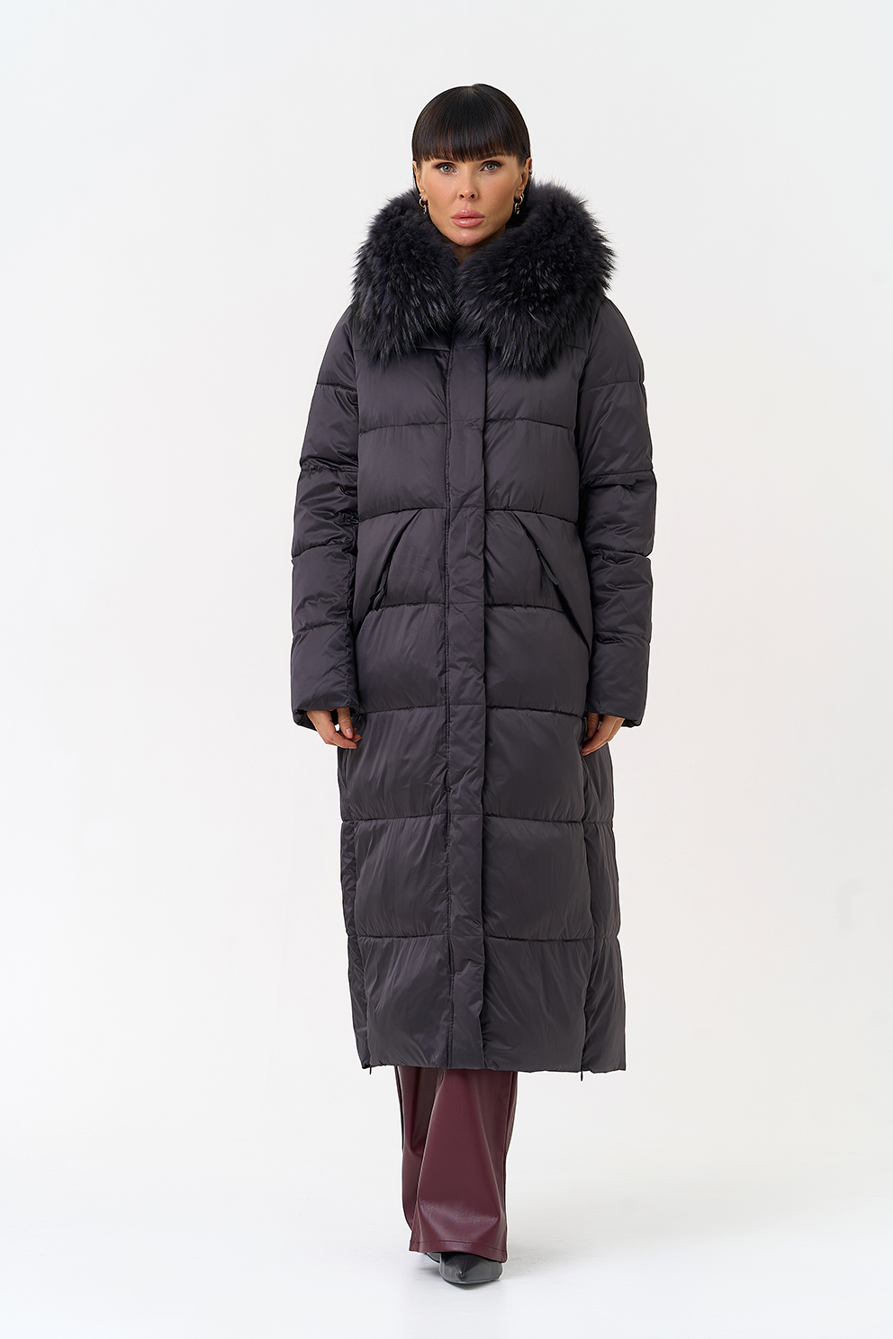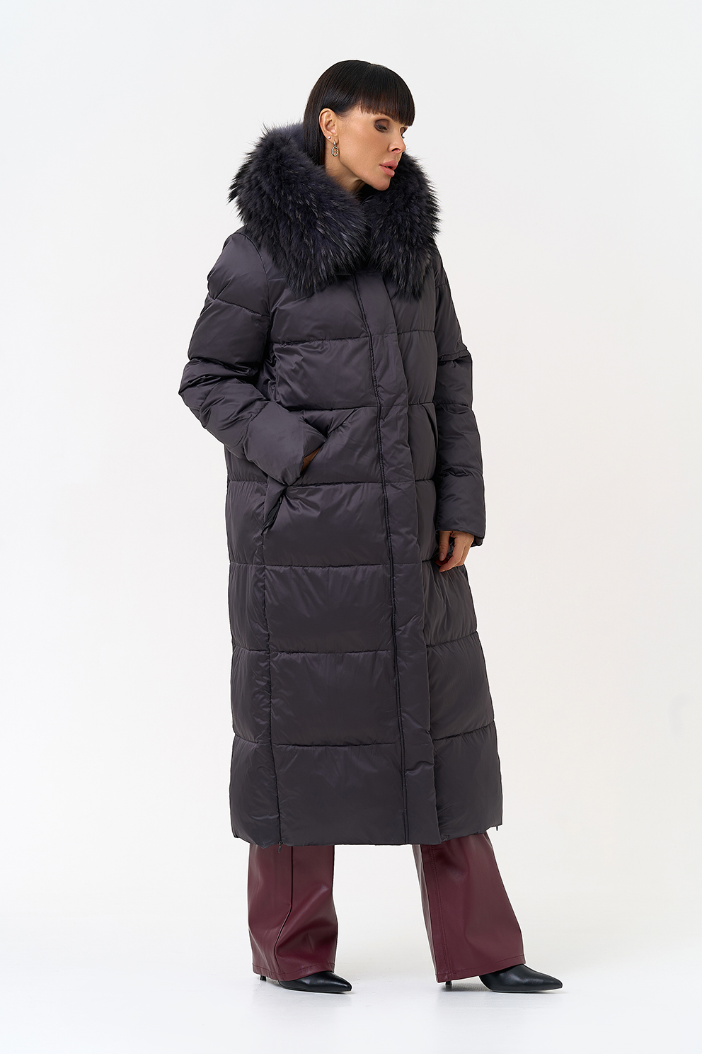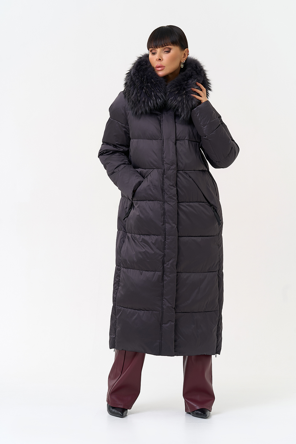 Отделка воротника - чернобурка, цвет фиолетовый