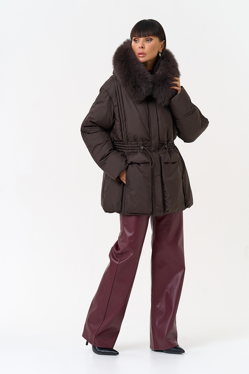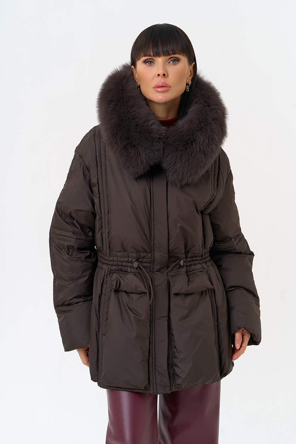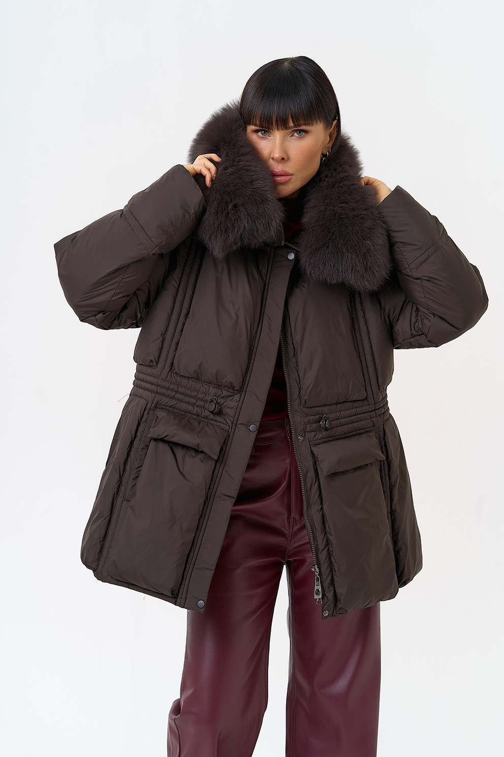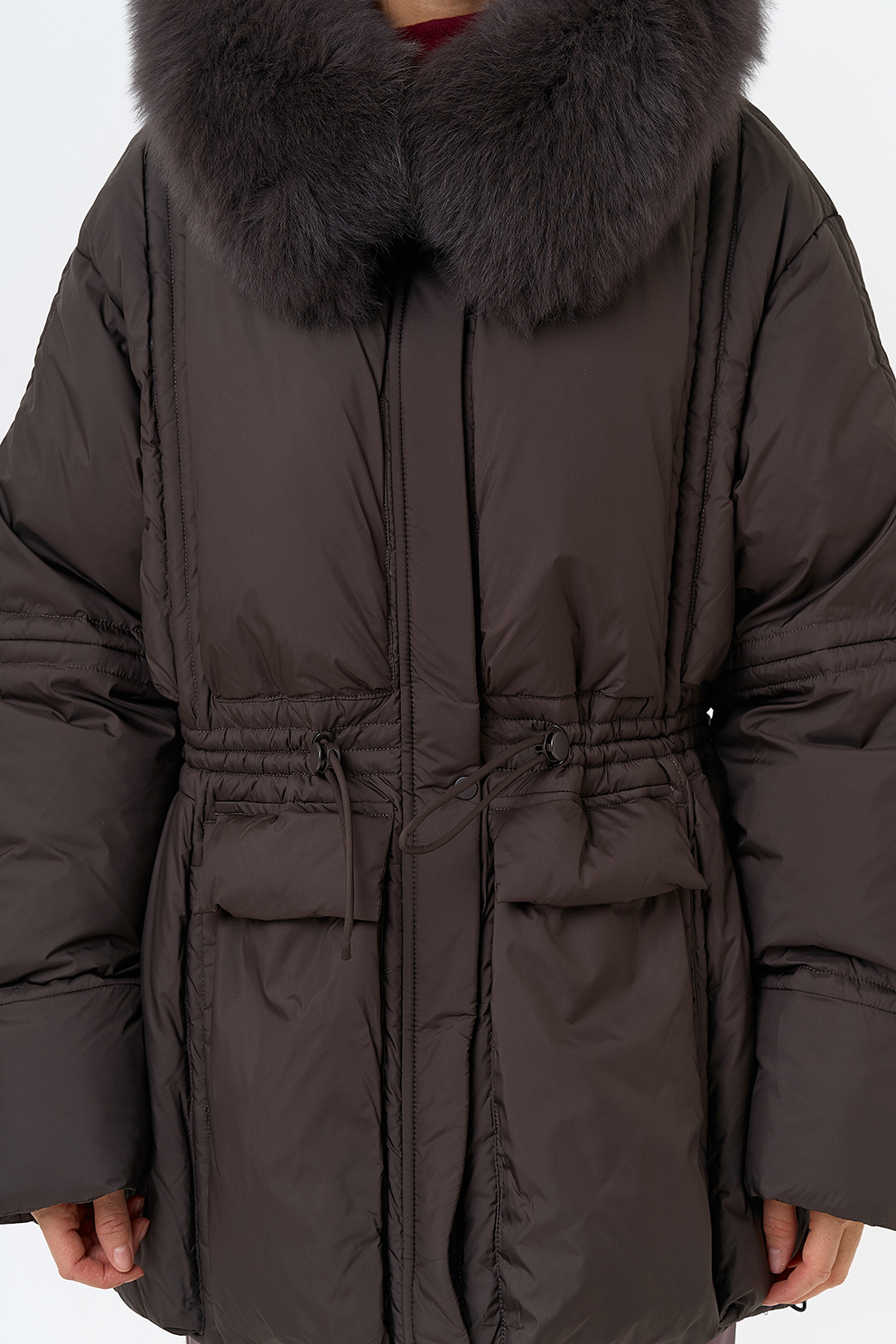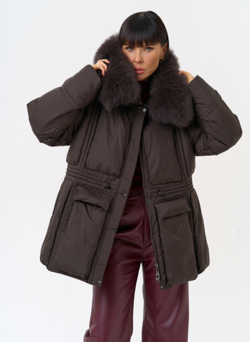Отделка воротника - песец, цвет коричневый
