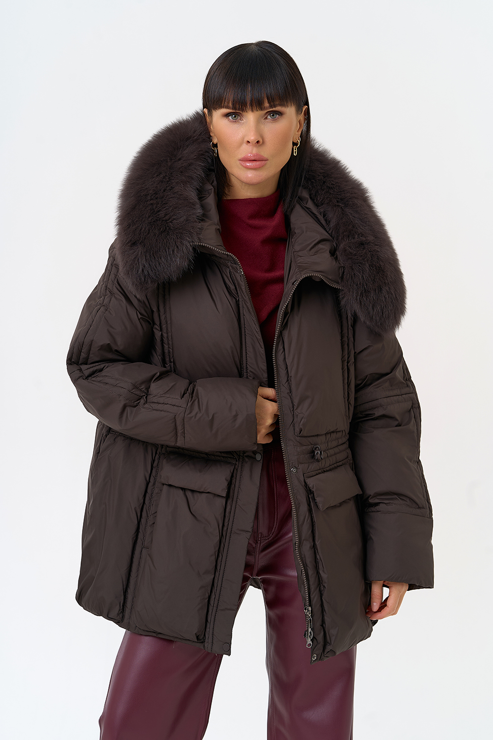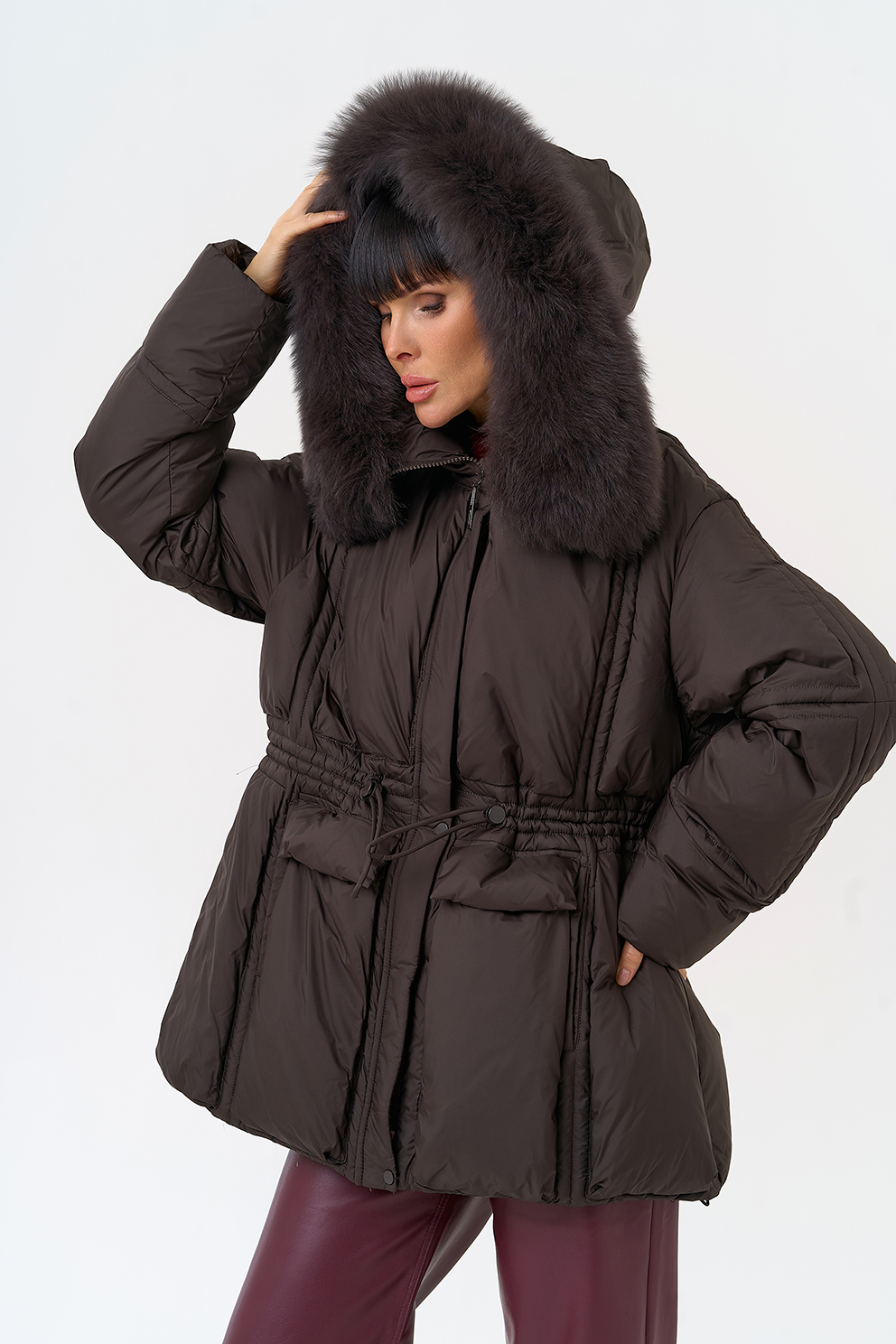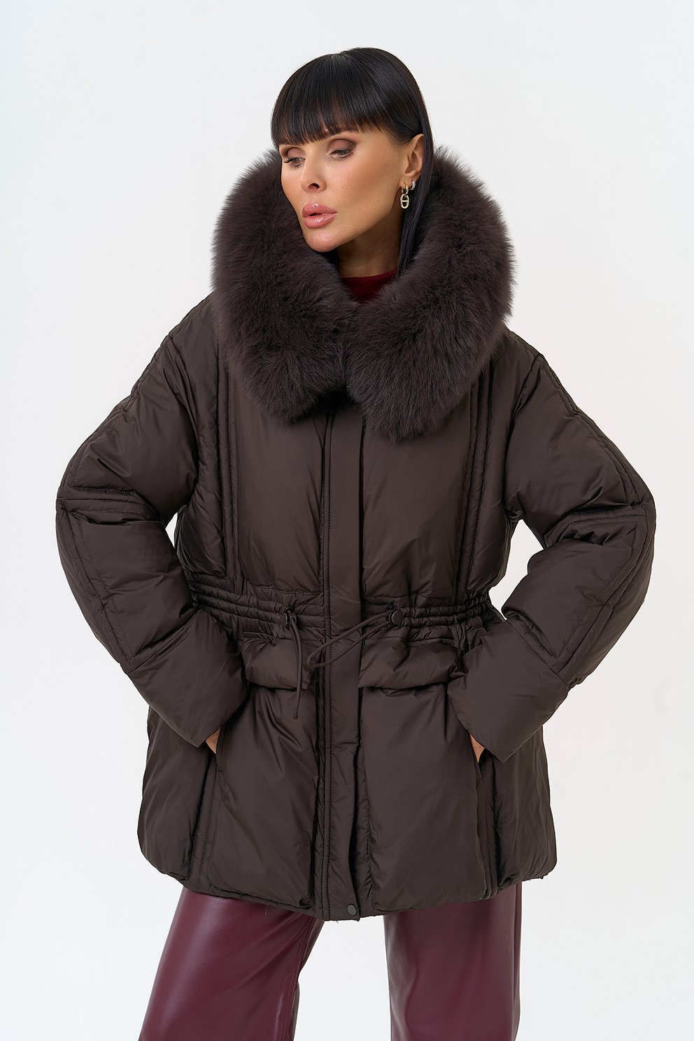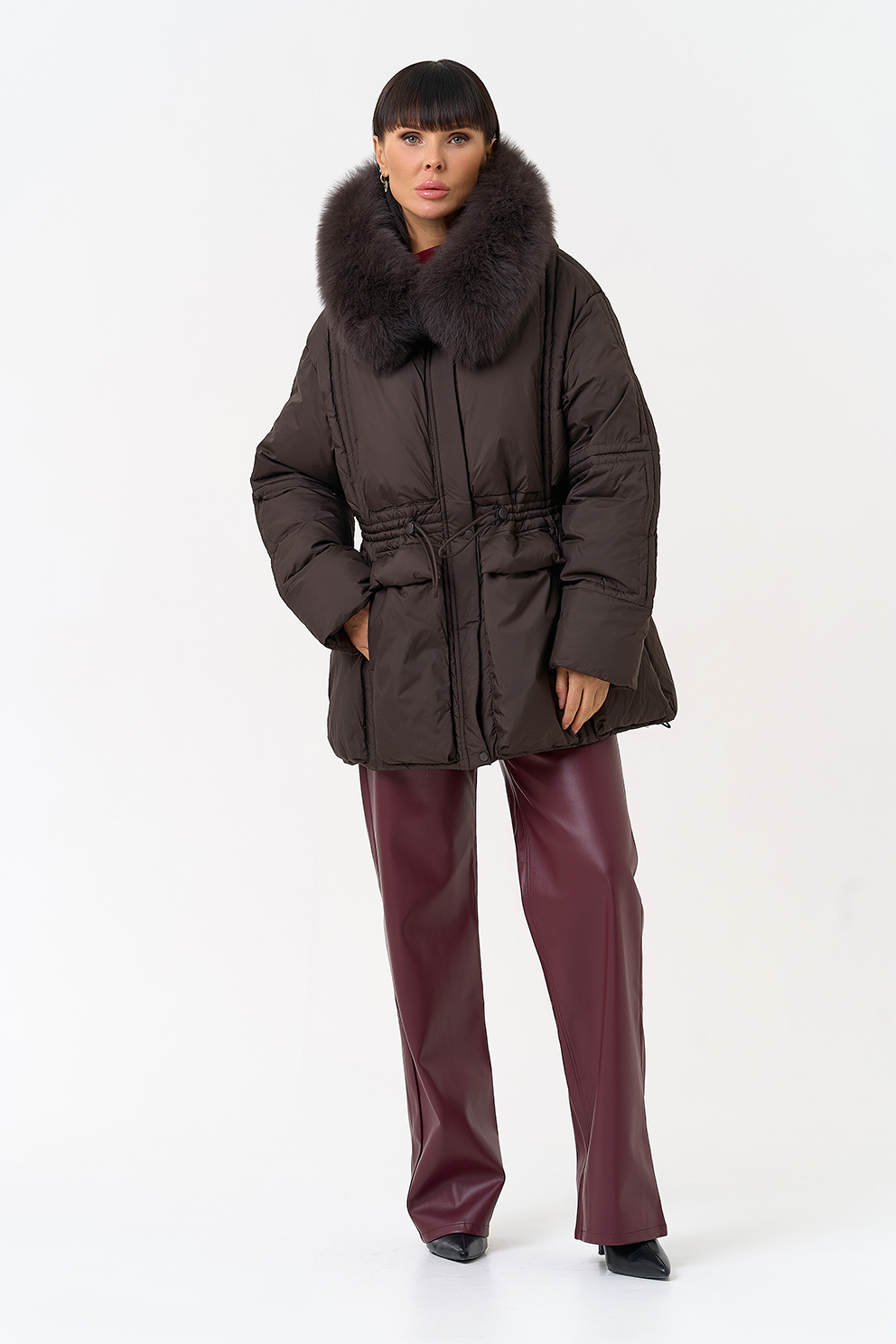 Отделка воротника - песец, цвет коричневый