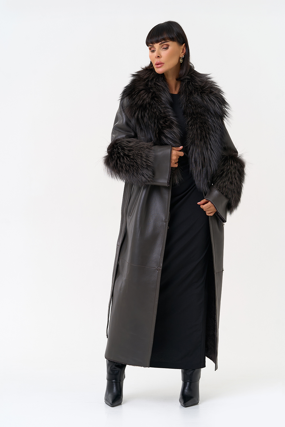 Отделка ворота - мех лисы, цвет серый